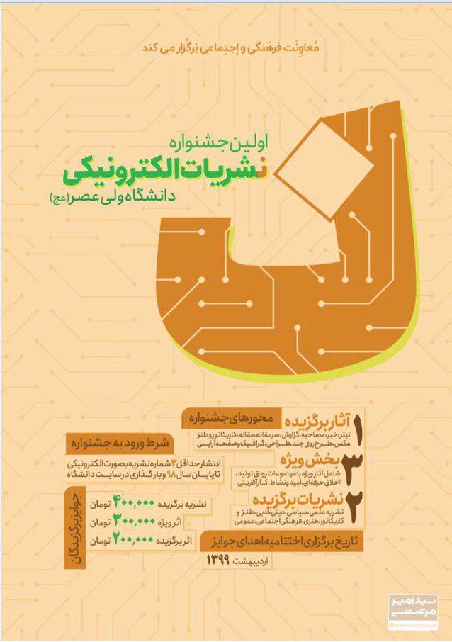 سی و پنجمین جشنواره سراسری دانشجویان در بخش های آوایی، معارفی، ادبی، هنری، پژوهشی، فن آوری برکزار می گردد. جهت ...
