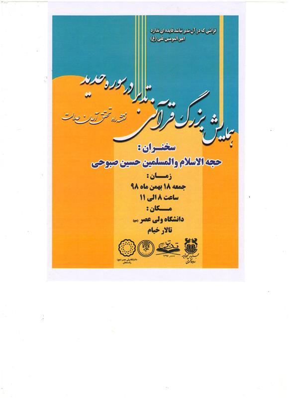 همایش یزرگ قرآنی تدبر در سوره حدید سخنران: حجه الاسلام و المسلمین حسین صبوحی زمان» جمعه ۱۸ بهمن ماه ۹۸ ...